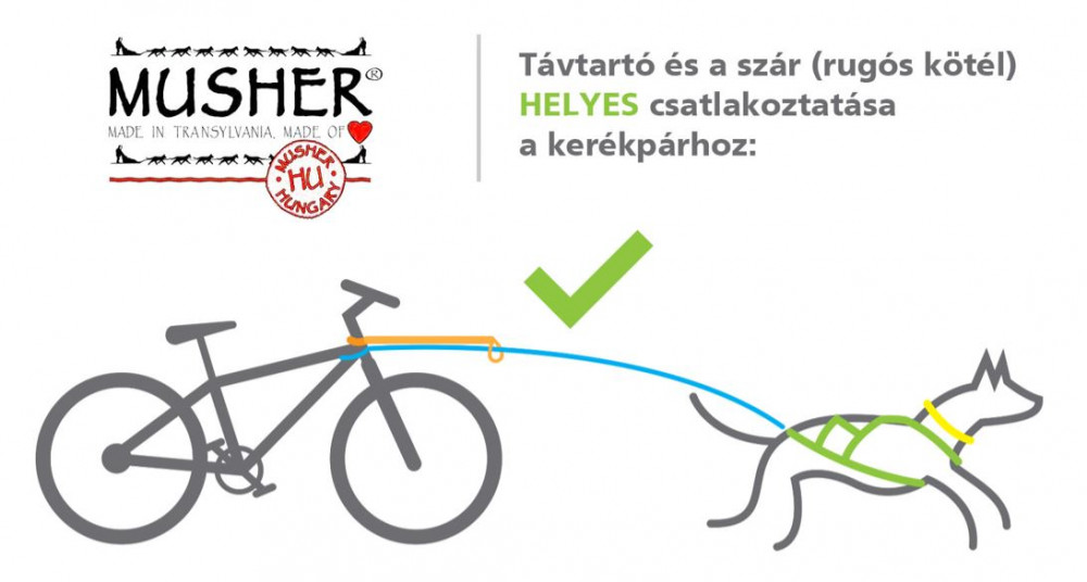 Ez a fajta távtartó a kutya kerékpár melletti futtatására nem alkalmas, kizárólag a kerékpár előtt futó kutyák mozgásához lett kialakítva!