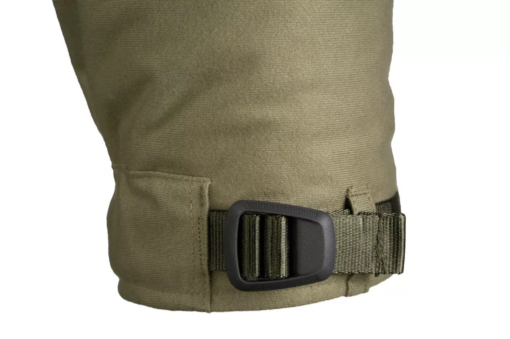 Csendes: A külső réteg szálcsiszolt poliészterből, tépőzár helyett gombokból és hevederes mandzsetta-állításból áll, amelyek mind csökkentik a zajt.