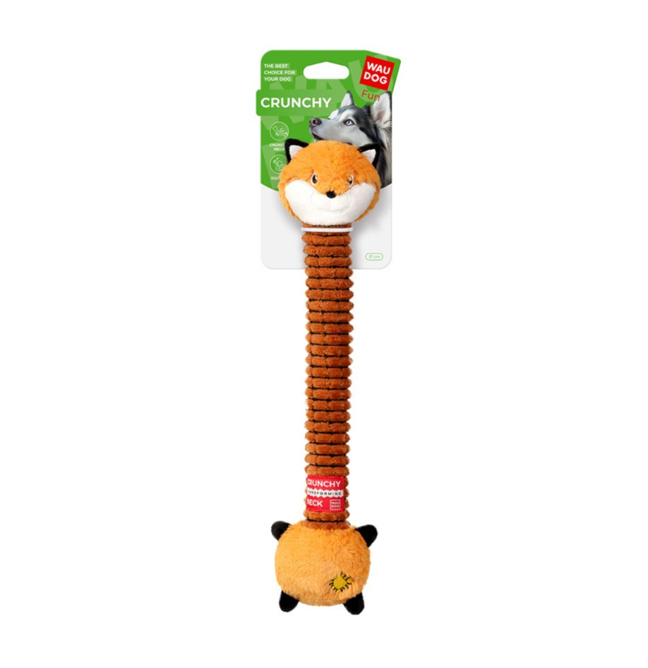 A WAUDOG Fun Crunchy játékok különleges élményt nyújtanak a kutyáknak az egyedi ropogó hang és a változatos anyag- és textúrakombináció révén. A beépített rugalmas szerkezet minden hajlításnál izgalmas roppanást ad, ami felkelti a kutya figyelmét, és ösztönzi a természetes játékösztönt.