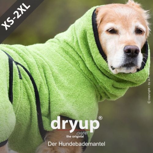 Esős séta, zuhanyzás vagy úszás után a kutya bundája gyorsan és egyszerűen szárítható a zseniális DRYUP szárítókabáttal - dörgölés nélkül! Pozitív mellékhatásként az autó, a lakóautó vagy a lakás is száraz és tiszta marad.